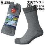 靴下 メンズ 足袋 さわやか蒸れない 快適メッシュ 軍足 指付 高級コーマ綿糸使用でソフト グレー 5足組 ソックス 25〜27cm 夏 丈夫 作業 KM777