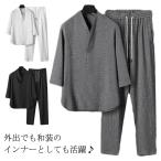 Vネック 接触冷感 アイスシルクセット 和風 着物 襟付き ジャージ メンズ 長襦袢 Tシャツ 半襦袢 春夏 下着 作務衣 セットアップ ロングパンツ