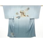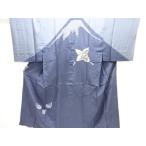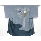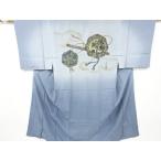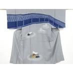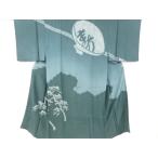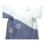 弐11034 モスリン長襦袢単衣 裄65丈117К青灰の絵羽 極美品