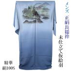 男物長襦袢 仮絵羽 正絹 -54- 広幅 精華縮緬 山水画 薄縹 絹100%