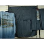 弐10966 本絹八王子陣馬紬 男着物羽織 裄69丈138К濃紺粗細 新品 長襦袢とセット 単衣物 証紙付き