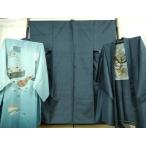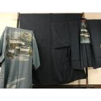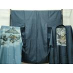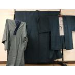 平和屋着物●男性 紬 アンサンブル 長襦袢セット 留紺色 正絹 逸品 CABB5069vp