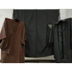 平和屋着物●男性 色無地 アンサンブル・長襦袢セット 着物・羽織:黒地 長襦袢:焦茶色 洗える着物 未使用 CABB4388yc