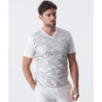 tシャツ 花柄箔プリントVネックカットソー メンズ