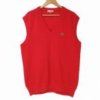 ラコステ LACOSTE シュミーズ CHEMISE ヴィンテージ ニットベスト プルオーバー フランス製 ワンポイント Vネック ウール 5 XL相当 赤