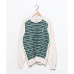 「LACOSTE L!VE」 長袖ニット M ホワイト×グリーン メンズ