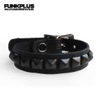 FUNK PLUS ファンクプラス 1連ピラミッド リストバンド スタッズリストバンド シルバーピラミッド メンズ ブラック BC176 パンク PUNK ロックファッション