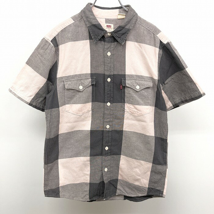【楽天スーパーSALE限定!! \★30%OFF★/対象商品|12月4日(木)20時00分〜12月11日(木)01時59分まで】【中古】LEVI'S リーバイス M メンズ シャツ チェック 両胸フラップポケット 半袖 綿×麻 コットン×リネン ピンク×チャコールグレー系 ピンク系