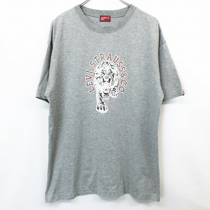 【楽天スーパーSALE限定!! \★30%OFF★/対象商品|12月4日(木)20時00分〜12月11日(木)01時59分まで】【中古】LEVI'S LIVI STRAUSS &CO. リーバイス L メンズ Tシャツ カットソー ロゴプリント タイガー 虎 トラ 丸首 半袖 綿100% ヘザーグレー 杢灰色