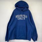 古着 リーボック Reebok パーカー スウェット カレッジプリント フーディ プルオーバー スポーツ 大きいサイズ 2XL ブルー メンズ