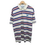 リーボック Reebok 古着 ポロシャツ 半袖 ロゴ刺繍 ボーダー オーバーサイズ L 白 ホワイト 青 ブルー 981097 ■MET2 メンズ