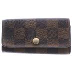 LOUIS VUITTON ルイヴィトン ダミエ ミュルティクレ4 キーケース キーリング バッグチャーム ブラウン ゴールド金具 PVC N62631