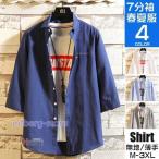 白シャツ メンズ カジュアルシャツ 開襟シャツ 七分丈 ワイシャツ サマー お兄系 半袖シャツ ルームウェア 部屋着 夏服