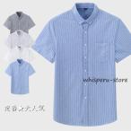 半袖ワイシャツ ボタンダウン ストライプ柄 無地 クールビズ メンズ 紳士用 ワイシャツ カッターシャツ グレー ストライプ Yシャツ
