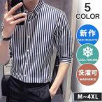 ワイシャツ メンズ 半袖シャツ トップス ストライプ 開襟シャツ カジュアル ビジネス 夏服 お洒落 紳士服 スリム 通勤 父の日 20代 春コーデ