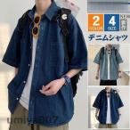 デニムシャツ 半袖 メンズ トップス おしゃれ 前開き 学生 アメカジ 大きいサイズ カジュアルシャツ おしゃれ 夏服 通学 20代 30代 春コーデ