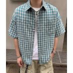 シャツ オーバーサイズチェック柄半袖シャツ/ユニセックス メンズ レディース