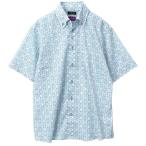 半袖ワイシャツ レギュラーフィット ボタンダウン 綿100% ブルー タイル柄 胸ポケット有 ヌーボー ブローチ タナローン