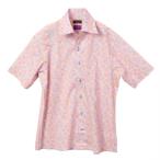 半袖ワイシャツ レギュラーフィット イタリアンカラー 綿100% ピンク 花柄 胸ポケット有