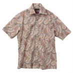 半袖ワイシャツ レギュラーフィット イタリアンカラー 綿100% ブラウン ペイズリー 胸ポケット有