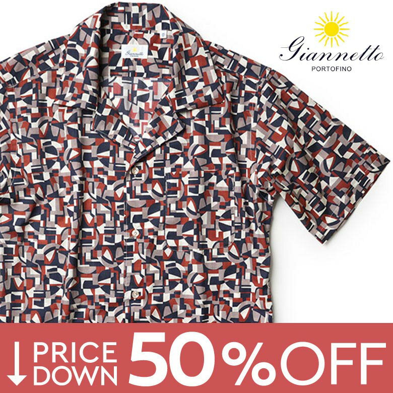 【50%OFF!】ジャンネット シャツ 半袖 オープンカラー Giannetto MARACAIBO 総柄 開襟 アロハシャツ ハワイシャツ コットン イタリア製 メンズ【レビュー】【返品不可】