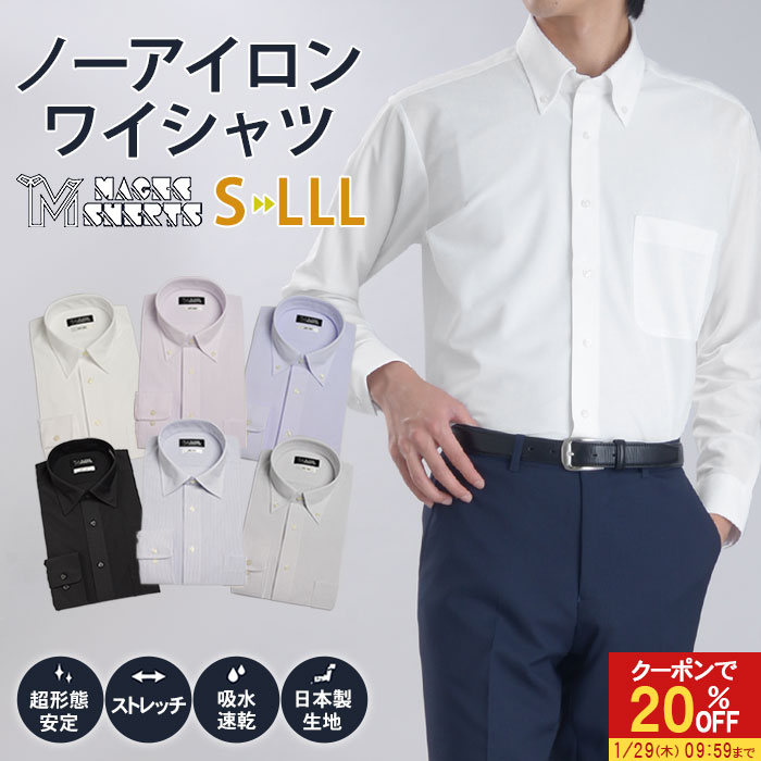 【20%OFFで3,184円】 ワイシャツ メンズ ノーアイロン 長袖 BIGシルエット ニットシャツ 形態安定 ストレッチ 吸水速乾 日本製生地 Yシャツ MAGIC SHIRTS ビジネスシャツ 大きい おしゃれ 白シャツ シャツ ボタンダウン ワイドカラー レギュラーカラー リクルート 就活