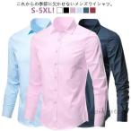 メンズ シャツ ワイシャツ 無地 長袖 カジュアル 通勤 通学 ボタン留め 春夏 フォーマル 6色 男子トップス