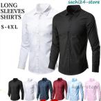 カジュアルシャツ カラーシャツ Yシャツ ワイシャツ 長袖 メンズ トップス スリム レギュラーカラー スタンダードカラー シャツスリーブ 前開き ボ