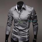 シルエットライン入りドレスシャツ メンズ 長袖 スリムメンズファッション ワイシャツ カジュアル フォーマル