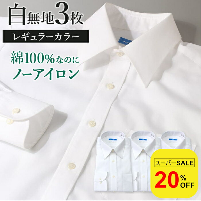 【スーパーSALE20%OFF】 ワイシャツ メンズ 白 長袖 白無地 レギュラーカラー 【綿100%なのにノーアイロン】 綿100% ノーアイロン ワイシャツ長袖 超形態安定 標準体 長袖ワイシャツ 形状記憶 形状安定 ノンアイロン ホワイト Yシ