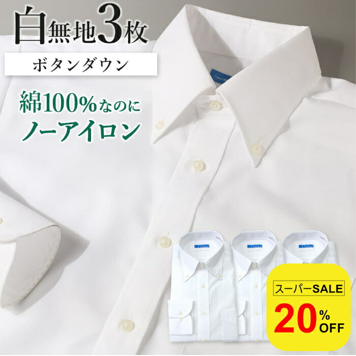 【スーパーSALE20%OFF】 ワイシャツ メンズ 白 ボタンダウン 【綿100%なのにノーアイロン】 綿100% ノーアイロン ワイシャツ長袖 超形態安定 標準体 長袖ワイシャツ 形状記憶 形状安定 ノンアイロン ホワイト Yシャツ カッターシャ