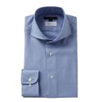 ワイシャツ メンズ 長袖 ドレスシャツ カッターシャツ ビジネスシャツ メリノウール100% ブルー イージーケア ノーアイロン イタリアンカラー ワイドカラー