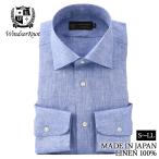 ワイシャツ ワイドカラー リネン ブルー 無地 麻100% 日本製 長袖 ドレスシャツ メンズ ウィンザーノット Windsorknot |入学式 卒業式 就職 プレゼント 祝い