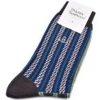 靴下 1足 ヴィヴィアン ウエストウッド メンズ ブランド バイカラー ストライプ ライン ソックス ロゴ 紺 ネイビー 茶 ブラウン グリーン 25-26 cm 男性 紳士