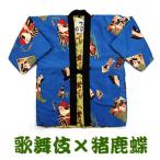 はんてん 半纏 半天 リバーシブル あったか メンズ 送料無料 歌舞伎(イエロー)x猪鹿蝶(サックス) 綿入り ちゃんちゃんこ どてら 丹前