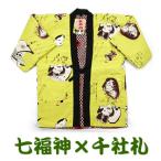 半纏 はんてん 半天 リバーシブル あったか メンズ 送料無料 七福神(クリーム)x千社札(エンジ) 綿入り ちゃんちゃんこ どてら 丹前
