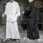 甚平上下セットメンズ羽織作務衣甚平風セットアップ夏祭り七分袖花火大会浴衣風袴祭り半被半纏ビッグシルエットゆったり父の日プレゼント