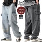 デニム カーゴパンツ メンズ 大きいサイズ ゆったり 太め ワイドパンツ ウエストゴム デニムパンツ ジーンズ ジーパン 作業着