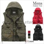 ベスト メンズ 前開きベスト カジュアルベスト ジレ ベスト 多機能ベスト ミリタリー アウトドア 作業服 フード付き 春 秋 新作
