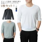 Tシャツ インナーシャツ 接触冷感 メンズ 長袖 涼しい トップス アイスシルク 薄手 ストレッチ 吸水速乾 丸首 作業服 伸縮性 トレーニングウェア