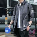 2枚で400円OFF シャツ メンズ 七分袖 新作 ワークシャツ 中袖シャツ オープンシャツ トップス 薄手 涼しい 夏服 部屋着 お兄系 春夏 コーデ ファッション 無地
