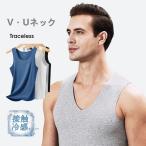 冷感インナー メンズ トップス インナー タンクトップ 春夏秋 ノースリーブ uネック vネック 無地 スポーツ 運動着 タイト スリム ストレッチ 伸縮性 男性
