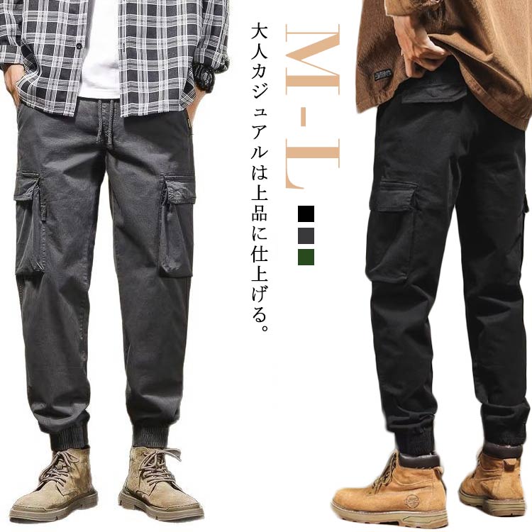 ジョガーパンツ メンズ カーゴパンツ リブパンツ チノパン 裾リブ 大きいサイズ パンツ ボトムス おしゃれ ワークズボン サイドポケット 個性 作業服 春秋冬