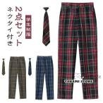 学生制服 2点セット スラックス ロングパンツ ネクタイ付き 制服 ズボン 男の子 チェック柄 男子 高校生 中学生 小学生 学生服 パンツ スクール