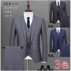 メンズスーツ チェック柄 3点セット スリーピース スーツ メンズ 結婚式 リクルート 入学式 卒業式 成人式 ビジネススーツ スリムスーツ 紳士服