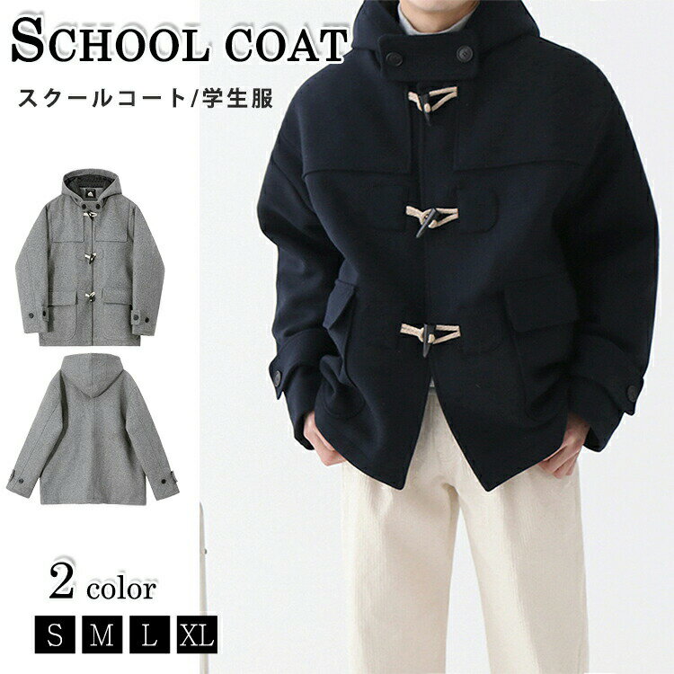 【9890円→実質8110円 8%OFFクーポン+P10倍!11/19 23:59まで】スクールコート ダッフルコート メンズ 学生服 制服 ダッフル スクールウェア 無地 通学 通勤 カジュアル アウター 学生 学校 秋冬 コート ショート丈 高校生
