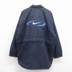 XL/古着 ナイキ NIKE 長袖 ジャケット メンズ 90年代 90s ビッグロゴ 刺繍 大きいサイズ ロング丈 紺 内側キルティング spe 26mar17