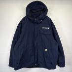古着 カーハート Carhartt ナイロンジャケット フルジップ 中綿 ワーク パーカー 大きいサイズ ワンポイントロゴ 3XL ネイビー メンズ