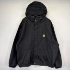 古着 カーハート Carhartt ジャケット フルジップ 刺繍企業ロゴ ショアラインジャケット ワンポイントロゴ 2XL ブラック系 メンズ