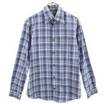 ARMANI JEANS アルマーニジーンズ チェック 長袖 コットンシャツ M ブルー系 ロゴ メンズ 古着 中古